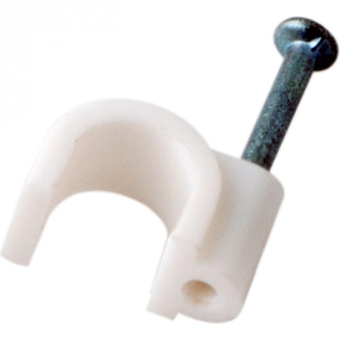 Высококачественный круглый крепеж кабеля REXANT представляет собой дугообразную пластиковую скобу диаметром 7 мм с гвоздём. Используется для мгновенного, а главное надёжного крепления проводов и кабелей к поверхностям стен, несущих конструкций и потолков. Гвоздик выполнен из закаленного металла, что позволит надежно забивать его даже в плотные и твердые материалы, не опасаясь сломать или погнуть гвоздь.