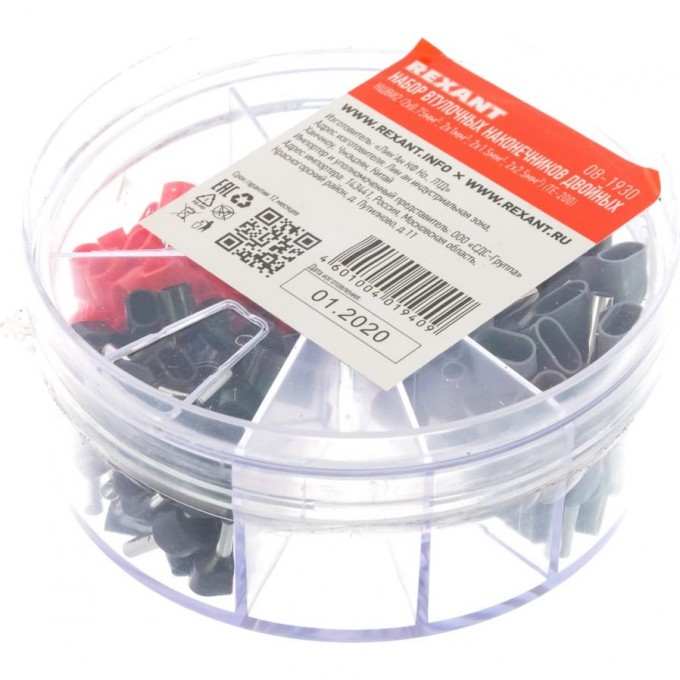 Набор втулочных наконечников двойных НШВИ2 (2х0.75 мм²; 2х1 мм²; 2х1.5 мм²; 2х2.5 мм²) в боксе (ТE-200) REXANT предназначен для создания быстрого и качественного подключения различного электрооборудования и монтажа электросетей. Такой современный способ подготовки кабеля к соединению заменяет процесс обслуживания или скрутки многожильных медных проводов, формируя целостное окончание кабеля с последующим подключением промышленного или бытового электрооборудования.