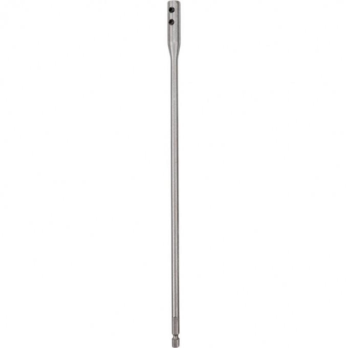 Изготовлен из высококачественной углеродистой стали. Имеет шестигранное посадочное отверстие с двумя поперечными крепежными винтами для надежной фиксации хвостовиков перовых сверл. Хвостовик удлинителя также имеет шестигранную форму, что предотвращает поворот сверла в патроне дрели.